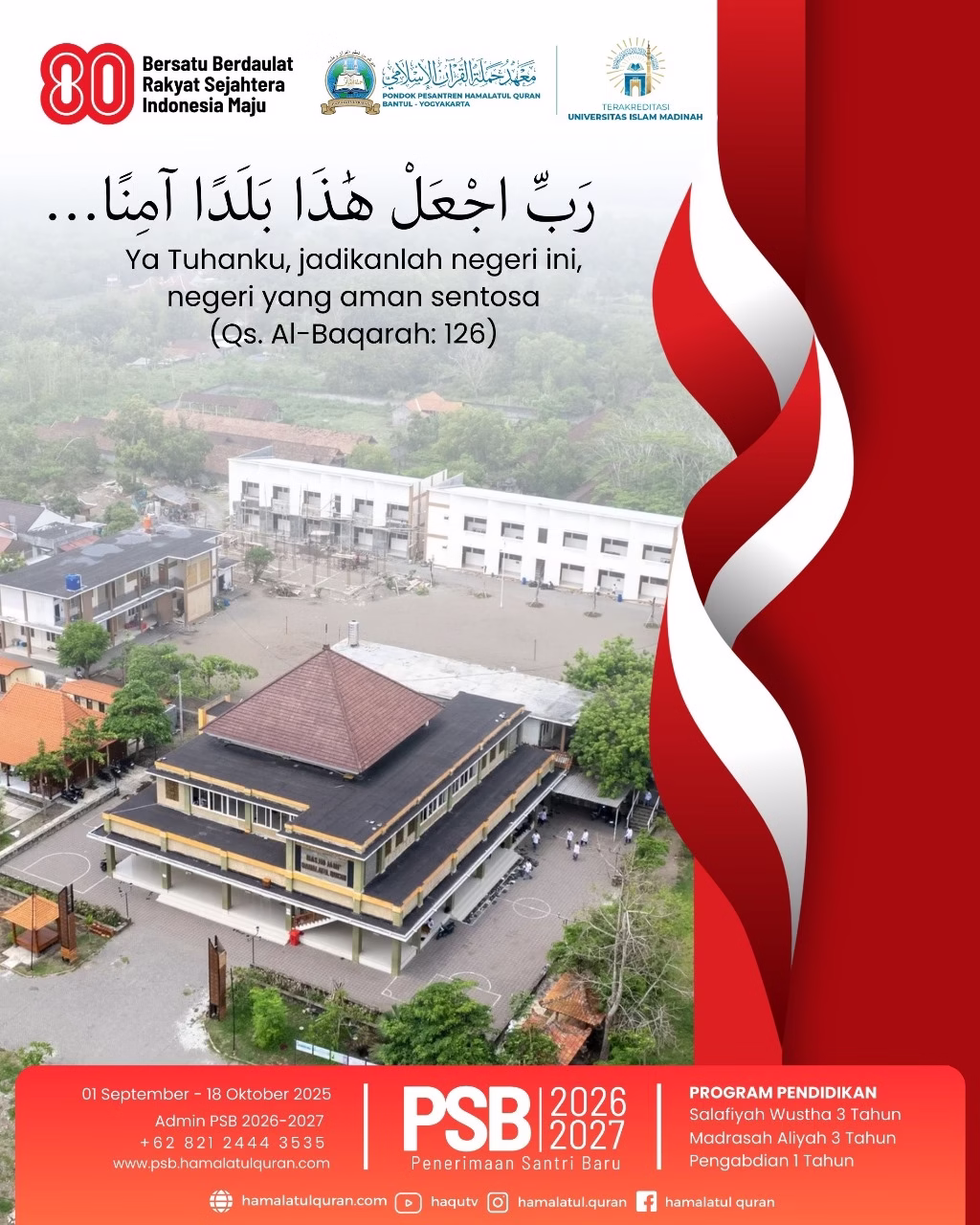 Sanden – Sebanyak tiga belas santri Madrasah Aliyah (MA) Hamalatul Quran meraih kehormatan sebagai bagian dari Pasukan Pengibar Bendera (Paskibra) dalam upacara peringatan Hari Ulang Tahun Kemerdekaan Republik Indonesia ke-80 yang digelar di Lapangan Gadingharjo, Kapanewon Sanden, pada Ahad (17/8/2025).